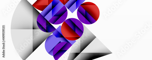 abstract, geometric, composition, circle, triangle, intersect, creating, dynamic, visual, effect, purple, red, hue, dominate, white, background, modern, design, geometry, shape, intersection, digital, art, graphic, vibrant, bold, contrast, minimalist, pattern, structure, form, illusion, aesthetic, contemporary, creative, colourful, sleek, angular, layered, depth, texture, light, shadow, symmetry, balance, space, vector, illustration