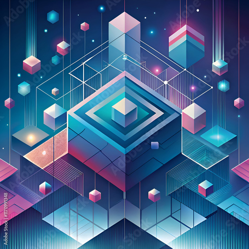 abstract, geometric, technology, futuristic, neon, three-dimensional, design, pattern, network, connection, space, digital, illustration, graphic, background, wallpaper, minimalism, modern, art, blue, pink, purple, glow, light, structure, line, shape, creative, web, app, interface, concept, idea, innovation, future, datum, artificial intelligence