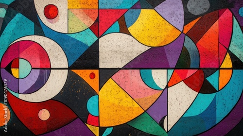Abstract geometric pattern with bright colors and organic shapes.
