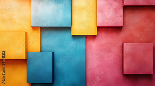Abstract Geometric Shapes in Yellow, Blue, and Pink