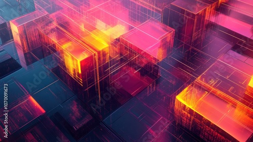 Abstract Geometric Shapes with Glowing Lines and Colors