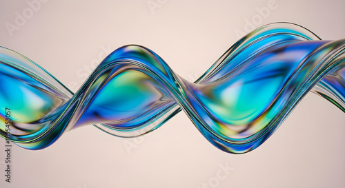 Abstract Glass Wave 3D Render Iridescent Blue Teal Ribbon Background