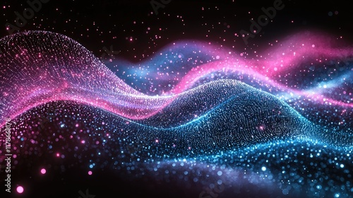 abstract, background, blue, pink, light, glistering, sparkle, glowing, wave, particle, texture, design, pattern, vibrant, colourful, bright, shiny, shimmer, cosmic, nebula, galaxy, space, energy, flow, motion, dynamic, futuristic, technology, digital, art, illustration, fantasy, magical, aethereal, dreamlike, bokeh, lens, flare, night, dark, gradient, colours, illumination, gleam