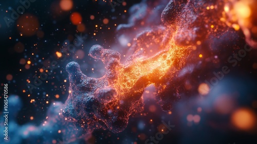Abstract Glowing 3D Particle Formation with Orange and Blue Hues