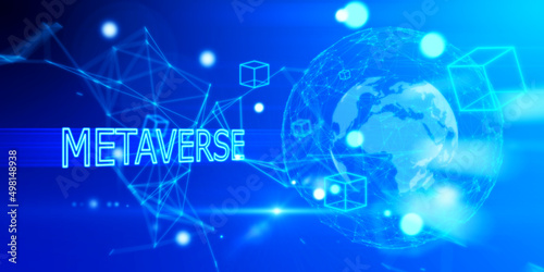 Abstract glowing blue globe metaverse background. Augmented reality and future concept. 3D Rendering.
