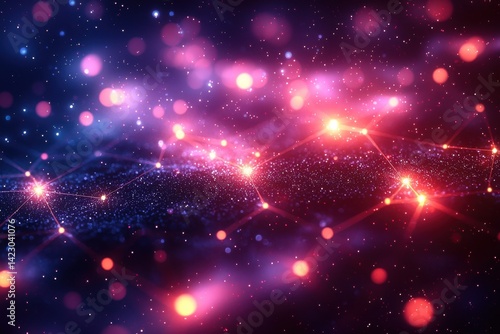 Abstract glowing digital network nodes interconnected with vibrant neon lights