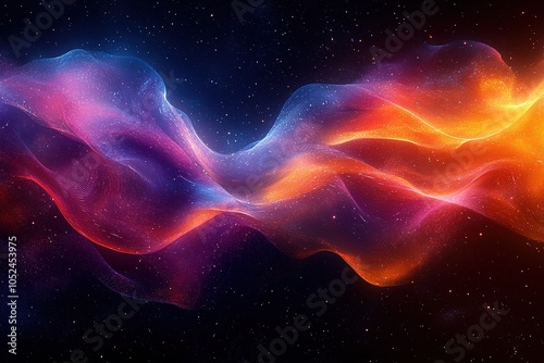 abstract, wave, blue, orange, glow, light, space, star, galaxy, cosmic, energy, vibrant, futuristic, digital, technology, design, pattern, texture, background, illustration, graphic, art, fantasy, magic, science, swirl, motion, dynamic, fluid, smooth, aethereal, mystical, modern, contemporary, style, trend, concept