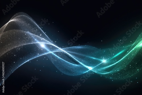 abstract, glowing, wavy, line, light, particle, dark, background, energy, digital, futuristic, design, motion, dynamic, fluid, smooth, elegant, modern, technology, science fiction, cosmic, space, texture, illuminated, sparkle, dot, glistering, blue, green, white, colours, gradient, pattern, art, graphic, vector, effect, illumination, sparkling, wave, stream