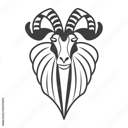 Abstract Goat Head Logo Design for Tattoo or Coloring Book