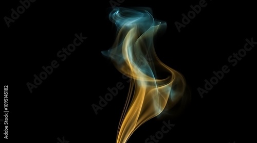 Abstract Gold And Blue Smoke Swirls Against Black Background