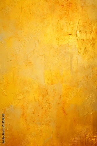 Abstract gold background yellow colors with sponge vintage grunge background texture, distressed rough smeary paint on wall, art canvas board, brochure ad, website template, blank space, generative ai