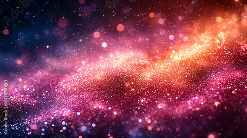 Abstract gold glitter background with gradient pink and purple tones. Luxury feminine backdrop with Empty Text Space