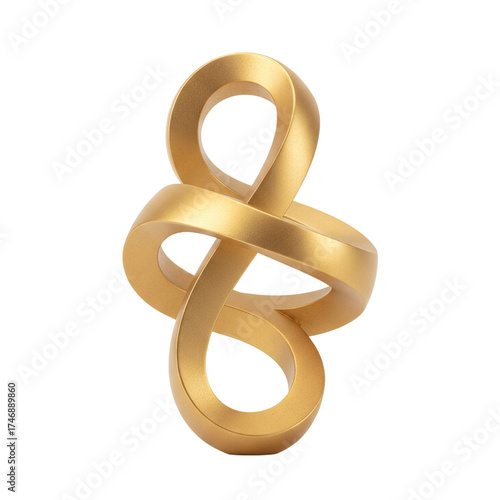 sculpture, abstract, art, statue, gold, loop, knot, isolated, cut-out, modern, contemporary, forever, eternity, connection, endless, elegant, luxury, home decor, minimalist, flowing, curved, continuous, decoration, metallic, conceptual, front view, object, studio shot, vertical
