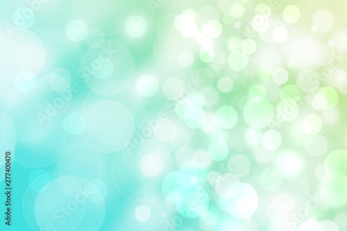 Abstract gradient green light turquoise shiny blurred background texture with circular bokeh lights. Beautiful backdrop. Space for design.