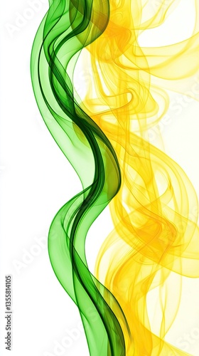 Abstract green and yellow smoke swirls on white background; design element