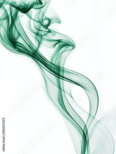 Abstract green smoke swirls on white background