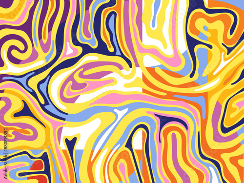 Abstract groovy hippie 70s background. Waves colorful vintage swirl, twirl ,psychedelic, striped pattern illustration design for wallpaper, web, banner and print.
