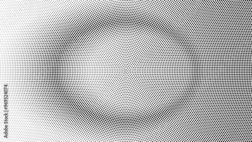 Abstract halftone dots background. Black dots circle over polka dot background. Optical illusion effect.