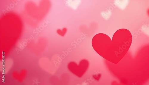 Abstract Heart Pattern Background, Overlapping Hearts in Shades of Pink and Red with a Soft Gradient, Romantic and Cheerful