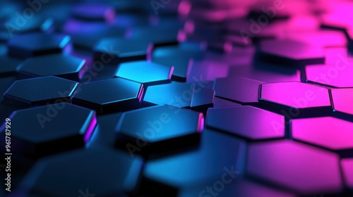 hexagon, pattern, geometric, shape, abstract, background, design, neon, light, blue, pink, purple, colours, gradient, futuristic, technology, modern, style, minimal, graphic, digital, art, three-dimensional, render, texture, glossy, surface, shiny, metallic, reflective, structure, grid, line, angle, perspective, depth, composition, contrast