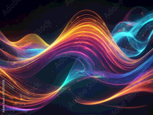 Abstract Holographic Light waves play, motion blur Party illustration background