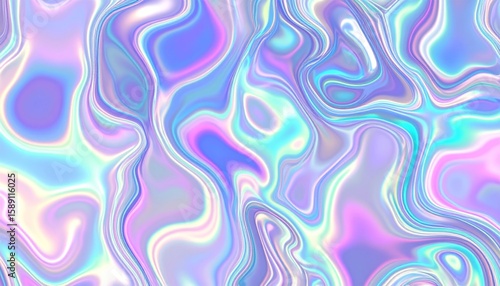 Abstract Holographic Liquid Texture With Shiny Fluid Swirls in Iridescent Colors as a Digital Background
