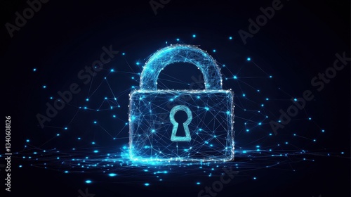 Abstract illustration of a digital network with a glowing padlock icon. Representing cyber security, data protection, and digital safety in the online world.