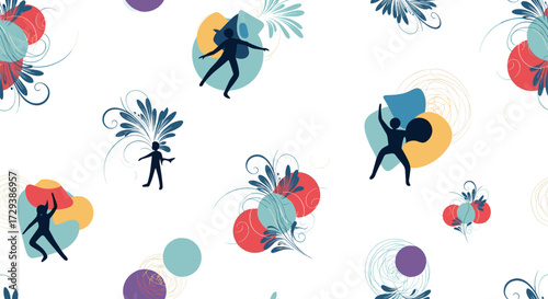 dancing, people, abstract, illustration, colourful, organic, shape, floral, element, pattern, dance, movement, silhouette, art, design, graphic, modern, contemporary, celebration, joy, energy, dynamic, festive, vibrant, playful, creative, whimsical, spring, summer, nature, botanical, leaf, sprig, circle, texture, background, white, isolated, clean, minimalist, stylised, geometric, composition, optical