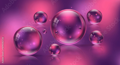 Abstract image of shiny purple and pink spheres on a reflective surface.