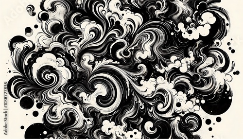 abstract, black, white, swirling, shape, pattern, contrast, bold, artistic, modern, digital, texture, monochrome, design, creative, minimal, generative, ai