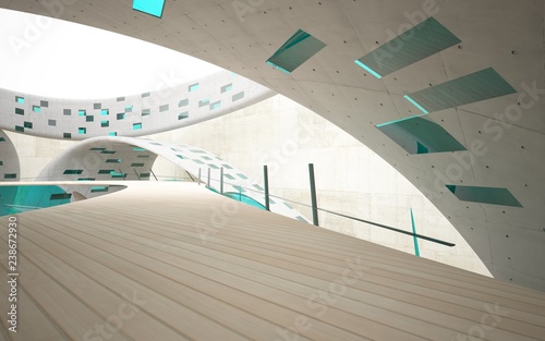 Abstract interior of wood, glass and concrete.3D illustration. rendering