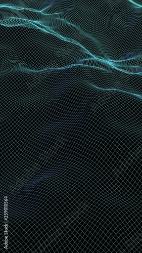 Abstract landscape background. Cyberspace green grid. Hi-tech network. 3D illustration