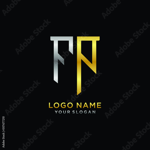 Abstract letter FP shield logo design template. Premium nominal monogram business sign.shield shape Letter Design in silver gold color
