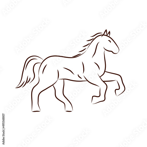 Abstract line drawing of a horse. Logo of a horse standing on two hooves. Image of a mare. Isolated on white background. Vector graphics
