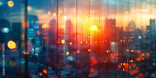 Abstract Lines and Commercial Office Building with Ground, Business Background