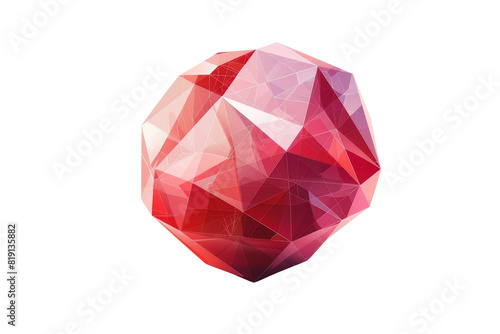 Abstract low poly 3D geometric shape with red and pink gradients, isolated on a transparent background. Modern design element or digital art.
