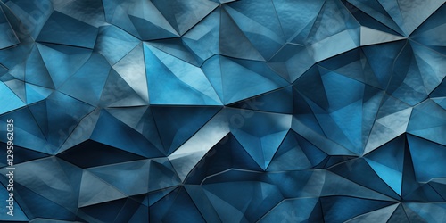 Abstract Low Poly Geometric Pattern in Blue and Black Minimalistic Photo with copy space,