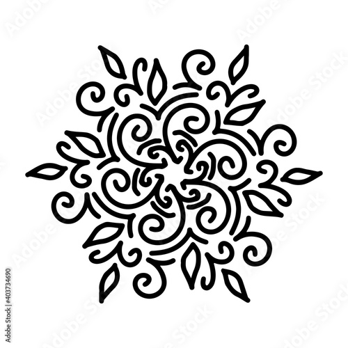 Abstract mandala ornament. Snowflake pattern. Black and white authentic background. Vector illustration.