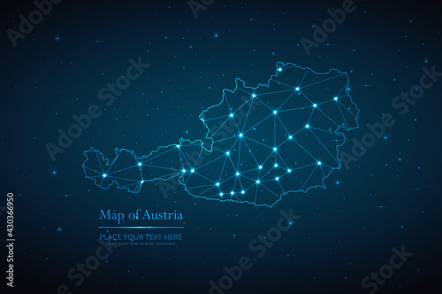 Abstract map of Austria geometric mesh polygonal network line, structure and point scales on dark background. Vector illustration eps 10