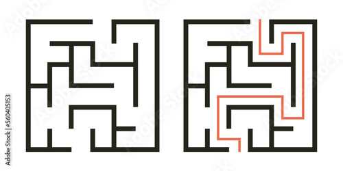 Abstract maze. Find right way. Isolated simple square maze black line on white background. Vector illustration.