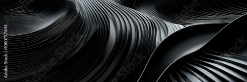 Abstract metallic waves, liquid metal texture, rippling chrome surface, high contrast, sleek futuristic design, dynamic curves, monochromatic silver and black, reflective material, fluid motion, ultra