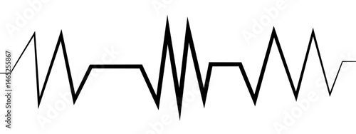 Abstract minimalist black zigzag line design on a white background. Pulse rate, sawtooth wave, increasing volume amplitude wave. Sound waves for voice design, music background