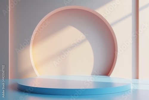 abstract, minimal, platform, blue, pink, background, light, circle, round, soft, colours, pastel, design, geometric, shape, minimalism, contemporary, modern, simple, elegant, clean, smooth, wall, shadow, sun, bright, glow, softness, style, studio, composition, architecture, decor, product, display, showcase, presentation