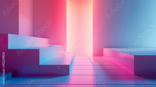 abstract, minimalist, scene, pink, blue, neon, light, to illuminate, white, stair, modern, contemporary, geometric, decor, colours, pastel, trendy, serene, edgy, visual, design, elegant, structure, artistic, subtile, architectural, interior, aethereal, aesthetic, harmonious, platform, aglow, conceptual, tranquil, peaceful, eclectic, stylish, sublime, futuristic, graceful