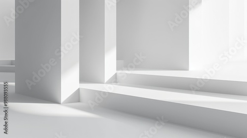 architecture, interior, design, minimalist, modern, abstract, white, room, structure, empty, space, geometric, clean, simple, light, shadow, bright, style, contemporary, line, shape, form, floor, wall, ceiling, column, beam, platform, stair, display, stage, studio, background, minimal, monochrome, render