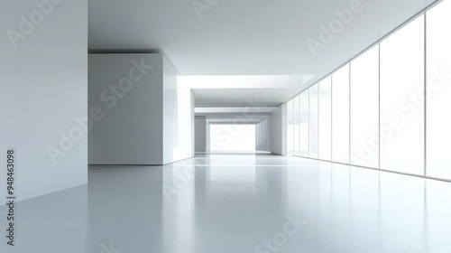 Abstract modern architectural background featuring an empty open space interior in 3D