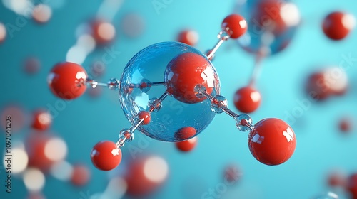Abstract molecules and vibrant blue red connections symbolizing scientific research
