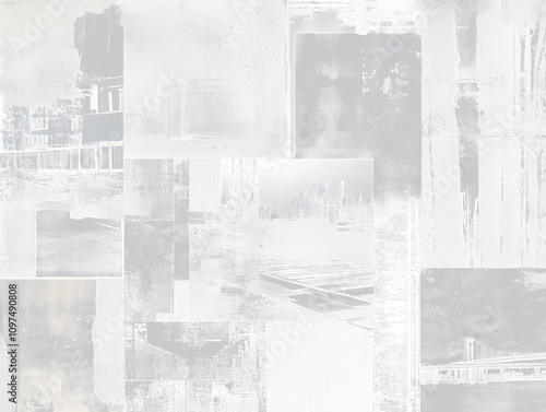 Abstract monochrome collage of urban and industrial scenes.