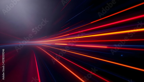 Abstract Motion Light Streaks Background with Vibrant Red, Orange, and Yellow Colors on Dark Gradient, Futuristic Digital Design for Speed and Energy Concepts