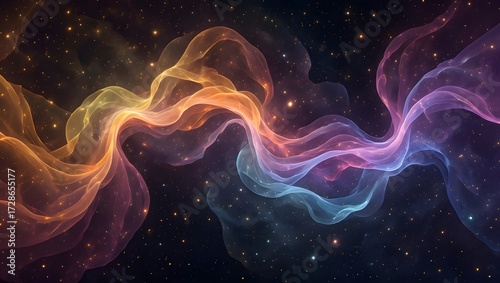 Abstract nebula with vibrant colors and sparkling stars in a cosmic background scene